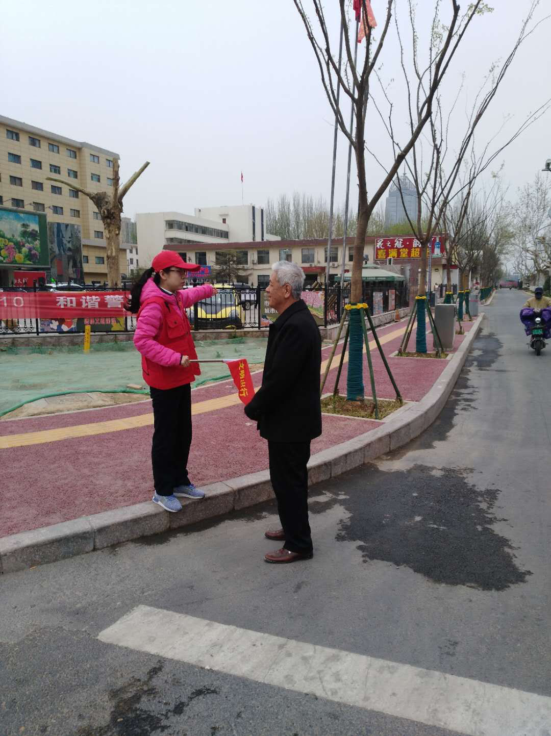 為宣傳文明出行理念,提高市民文明交通意識(shí),菏投集團(tuán)志愿者服務(wù)隊(duì)8名隊(duì)員于2019年3月29日分上午、下午兩批次在市區(qū)中華路與華英路交叉路口開展文明交通勸導(dǎo)活動(dòng)?;顒?dòng)現(xiàn)場(chǎng),志愿者穿戴紅色志愿服務(wù)衣帽,手持引導(dǎo)旗幟,對(duì)亂闖紅燈、逆向行駛、阻礙交通等不文明行為進(jìn)行耐心勸導(dǎo),并在上學(xué)放學(xué)時(shí)間段對(duì)過往中小學(xué)生進(jìn)行文明交通的宣傳和引導(dǎo),把“文明從我做起”的種子種在孩子們的心中。