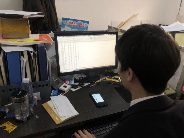 圖5:菏澤牡丹大酒店有限公司“學(xué)習(xí)強(qiáng)國”管理員孟星宇,正在統(tǒng)計(jì)“學(xué)習(xí)強(qiáng)國”學(xué)習(xí)排名,逐人進(jìn)行核對計(jì)算得分,積極與得分低個人取得聯(lián)系,了解清楚情況,進(jìn)行專門輔導(dǎo)。
