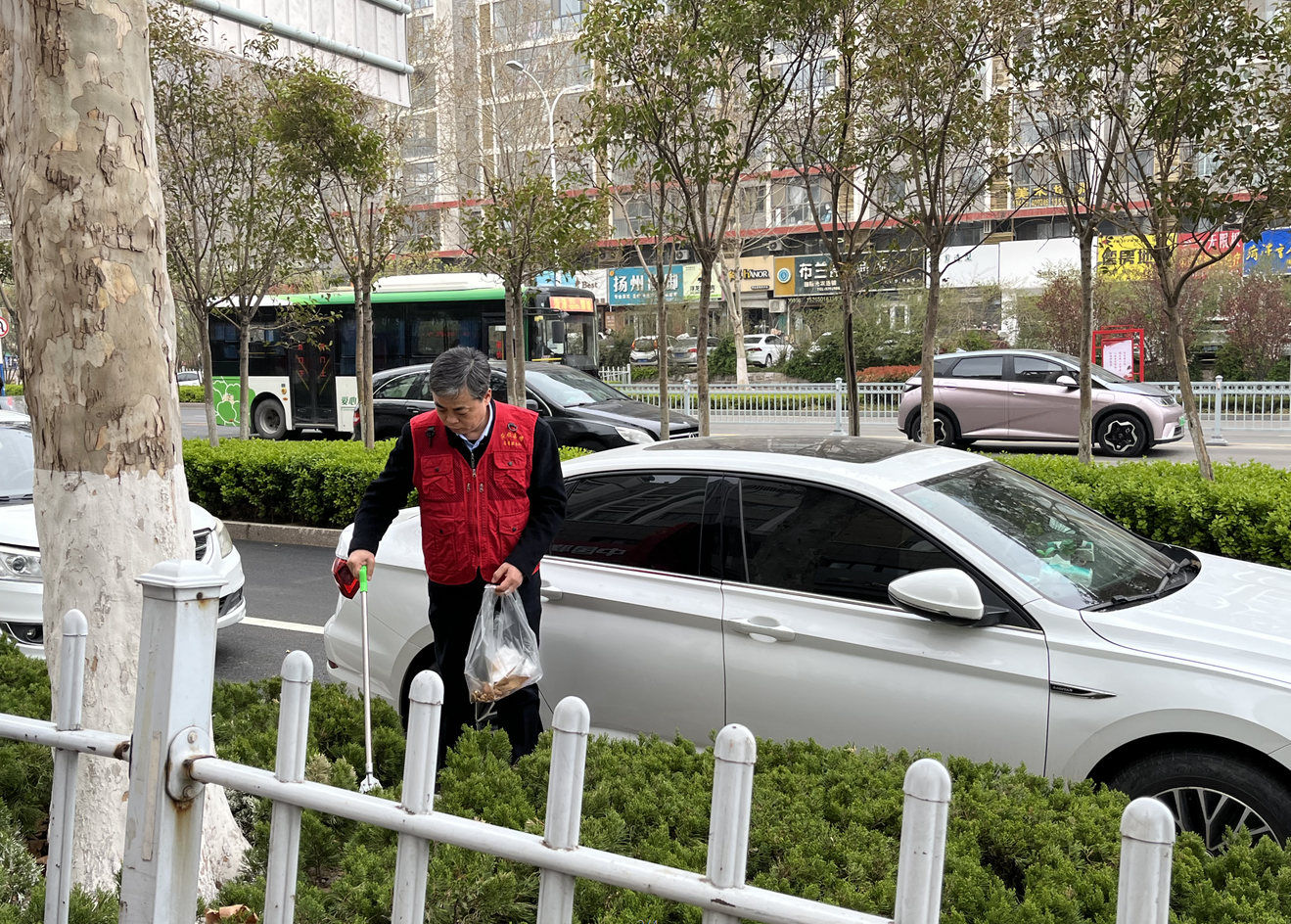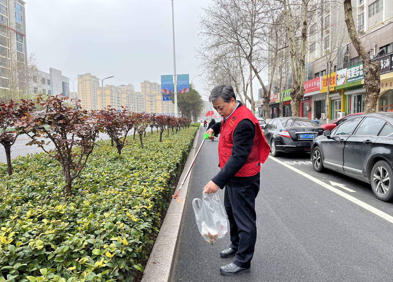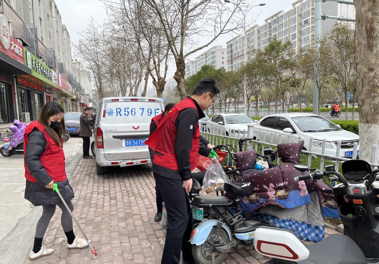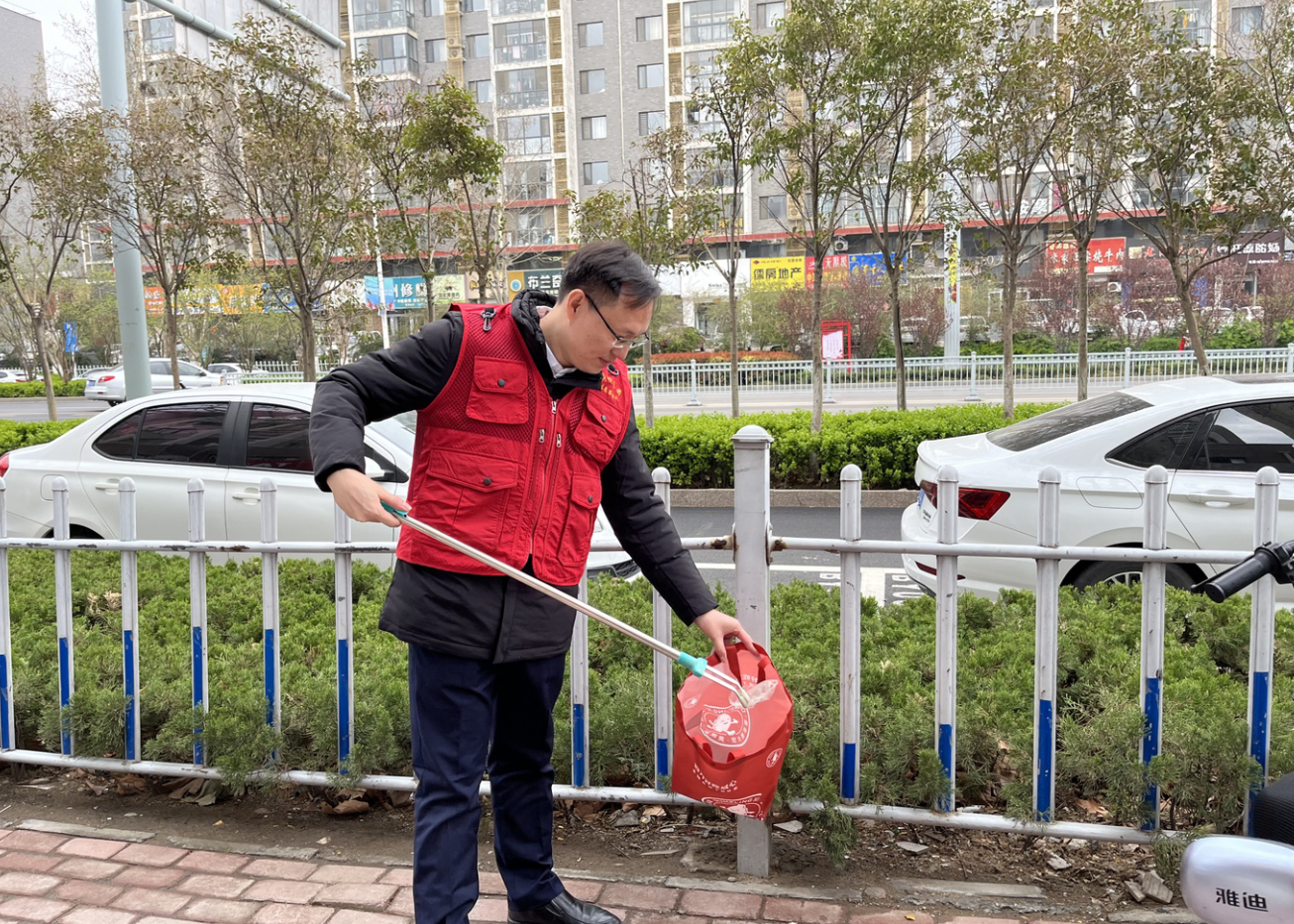 丁萬國與志愿者一同來到包聯(lián)小區(qū)帝都花園沿街路段,穿上志愿服,拿著垃圾鉗、環(huán)保袋等工具,沿著小區(qū)街巷清理公共區(qū)域、綠化帶等衛(wèi)生死角垃圾,規(guī)整非機(jī)動車擺放。