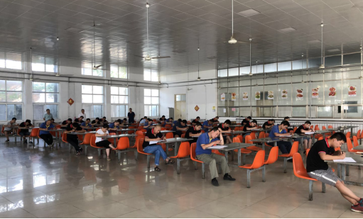 競賽活動分兩部分進(jìn)行,一是9月3日上午,模具事業(yè)部全體員工在職工餐廳進(jìn)行了統(tǒng)一的理論知識考試??荚嚽霸嚲碛晒巨k公室統(tǒng)一保管,考試采用單人單桌的形式,不同工序的員工使用不同的試卷。二是9月3日下午到9月5日晚,在模具車間進(jìn)行了崗位技能考試,考試分工序、分時段進(jìn)行,為保證考試的公平公正,按照考試順序組織已考人員和待考人員分區(qū)域等候。為確??荚嚱Y(jié)果的真實性,理論考試閱卷采用了密封個人信息閱卷的方式,并由督察部人員監(jiān)督考試和閱卷打分過程。